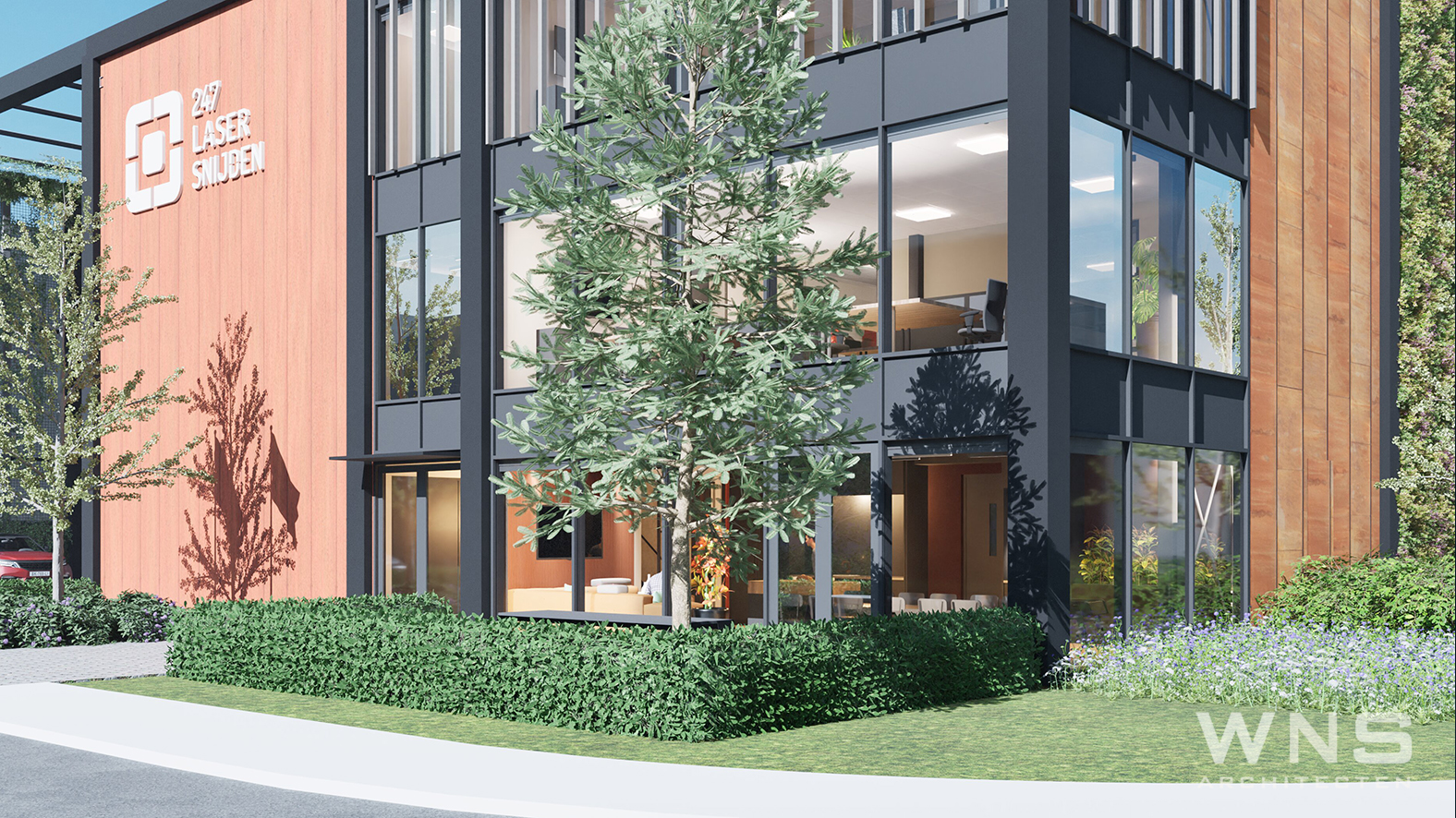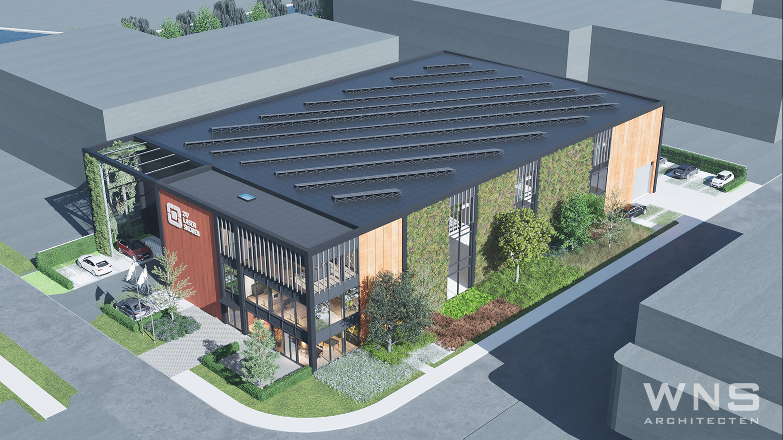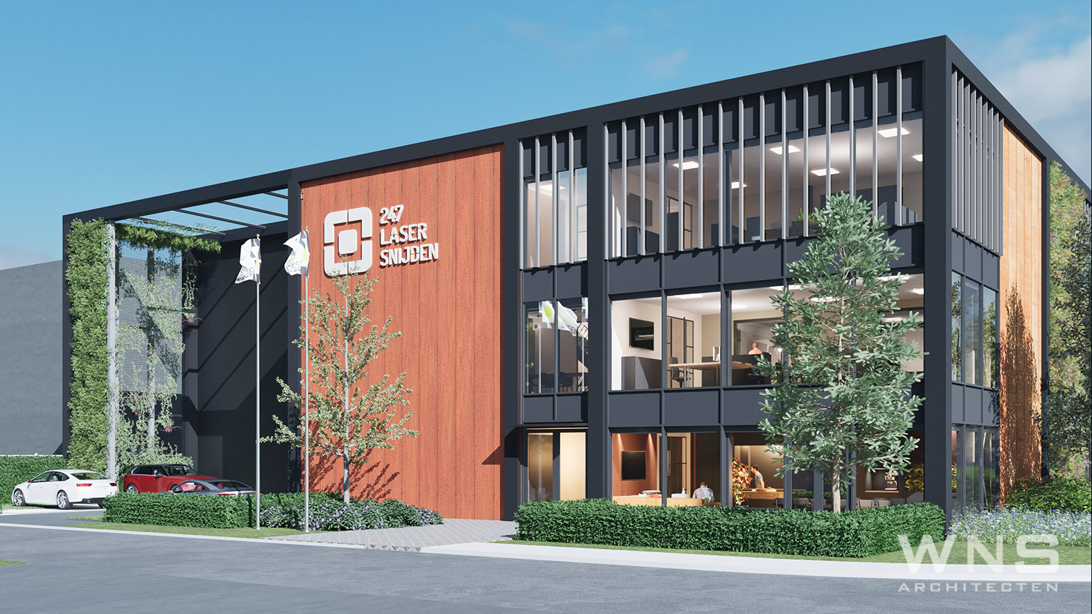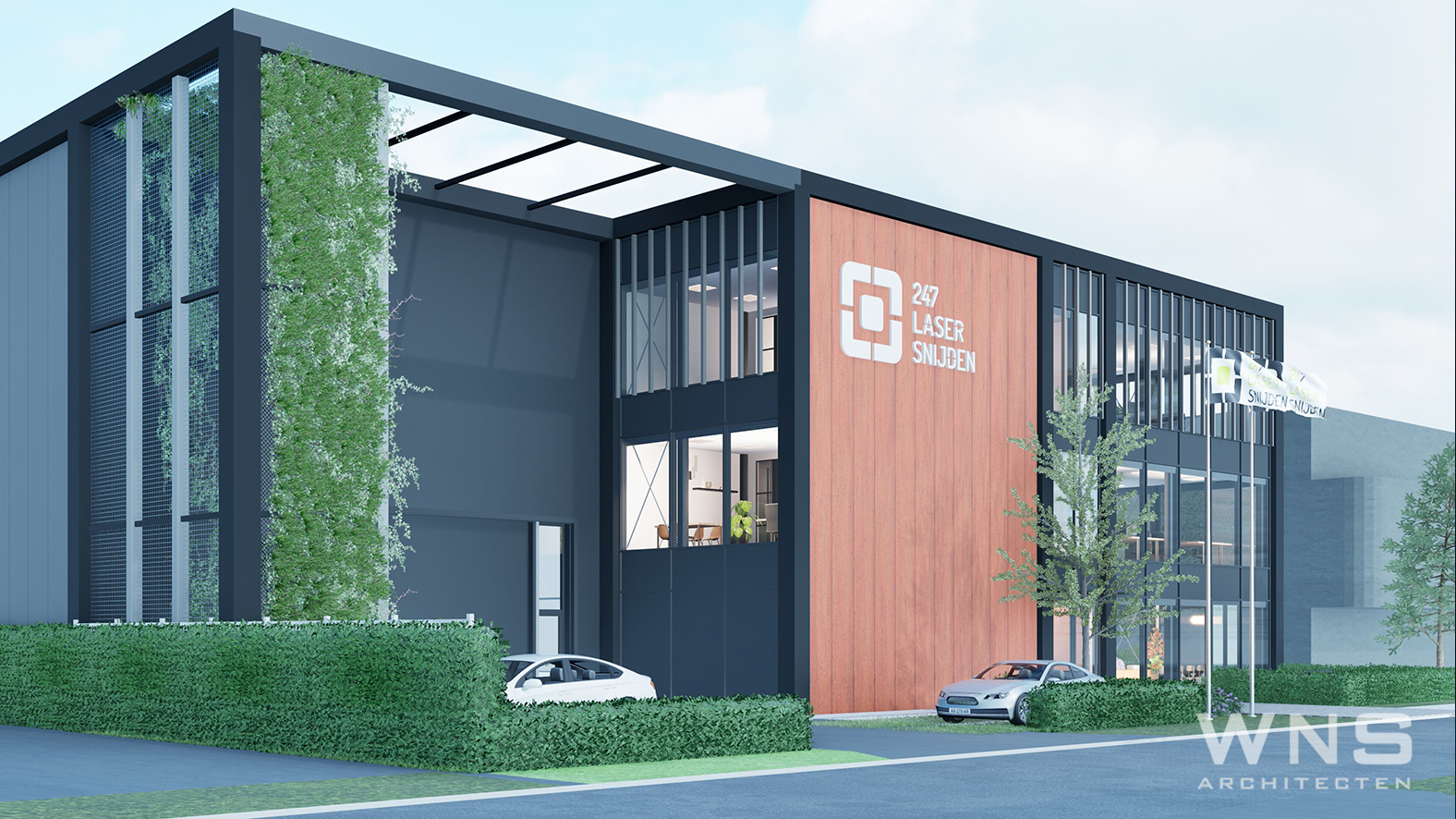 Complete realisatie van een duurzaam bedrijfspand met kantoor.