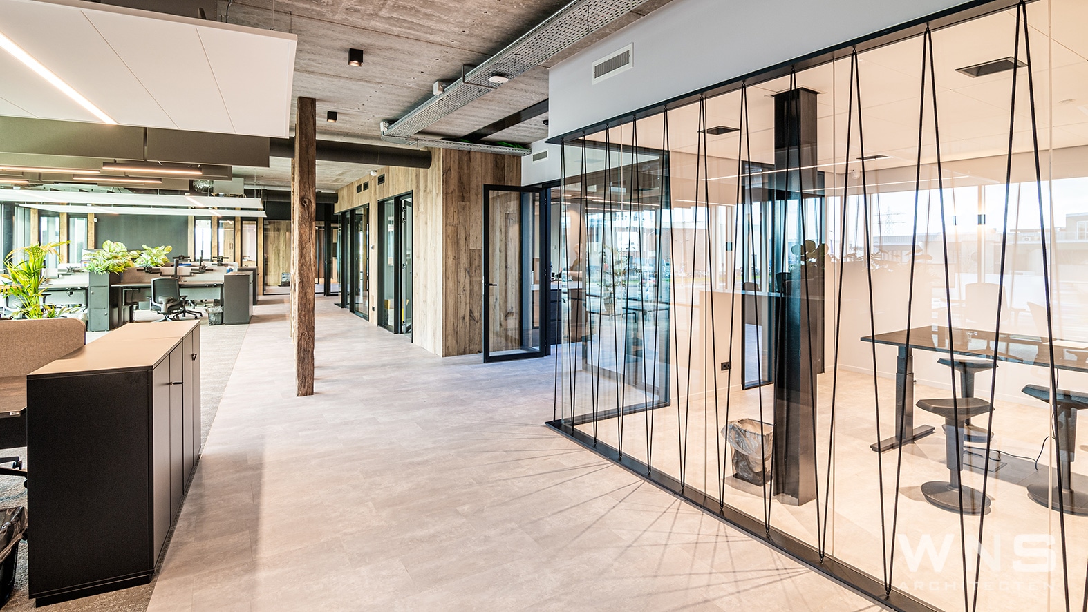 Complete realisatie van kantoor en bedrijfsruimte met assemblage- en logistieke ruimtes, inclusief een industrieel interieurontwerp.